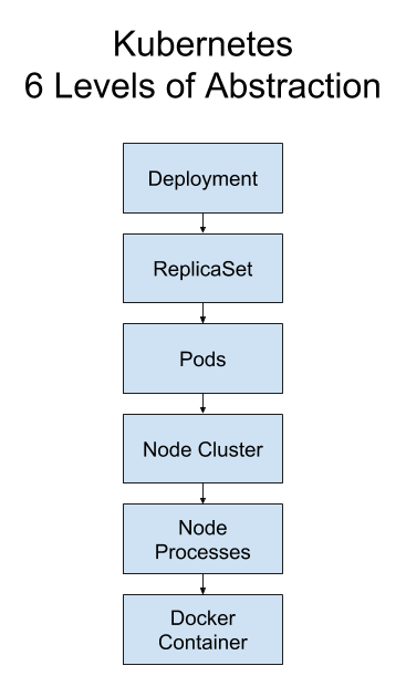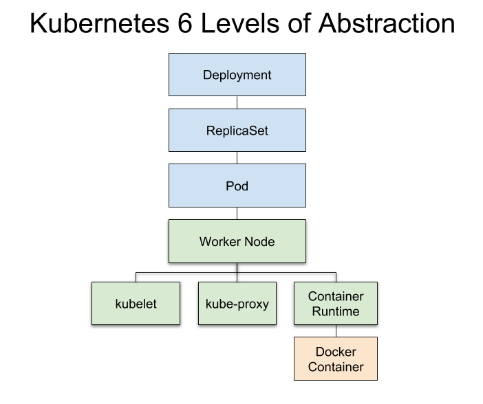 本章对于 k8s 的基本概念以及各级抽象进行了概述,对于一个 Deployment 有6级抽象: