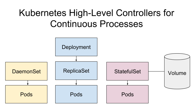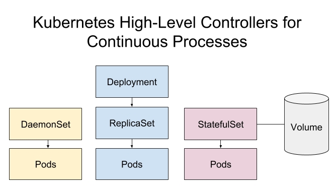 Deployment: 管理 ReplicaSets. 适用于持久化的无状态应用 (e.g. HTTP servers).